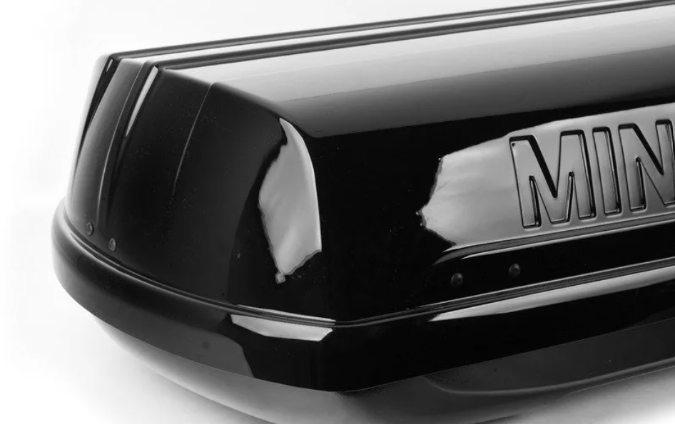 Cofre de techo con el diseño típico de MINI con un volumen de 320 litros y un innovador sistema de apertura por ambos lados. La carcasa inferior del cofre de techo es de antracita veteada y la superior, de color negro metalizado.